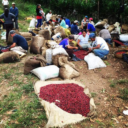 最近は、デジタルマップを用いたアプリを活用し農園内の区画毎の土壌、木、葉の状態を分析管理する事で、適した栄 養素の肥料散布をより効果的に行っています。またシェードツリーのメンテナンス、肥料、病害虫対策・・・どれか1つでも欠けれ ば良いコーヒーができないとの考えの元、全てに細心の注意を払っています。特にピッキングは重要で収穫後のチェリーは 再選別を行います。それは皆の一年間の努力を無駄にせず最良のコーヒーを作る為のものです。